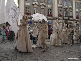 Glinolud będący archetypem rodzaju ludzkiego - mitycznym nawiązaniem do pradawnych obrzędów wszystkich niemal kultur planety w których akty malowania się błotem, gliną czy substancjami roślinnymi - uświęcały ważne chwile w życiu tych społeczności...Na pomysł wpadli mieszkańcy stolicy ceramiki - Bolesławca, gratulujemy i prosimy o więcej :) Bolesławiecka glinka ma ponoć wspaniałe właściwości poprawiające urodę i zwalczające zmarszczki. Po rynku chodziło sporo osób wymazanych gliną... (ja się spóźniłam na charakteryzację)