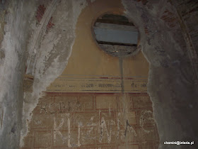 | Jedna ze ścian, szczątkowe dekoracje i napisy |