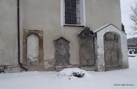 Z kościoła ocalało coś jeszcze, kilkanaście całopostaciowych nagrobków. Nie były umieszczone na widoku a wprost przeciwnie, ukryte w ruinach i przywalone stertą gruzu. Mój mąż miał to szczęście, że zdążył je zobaczyć.